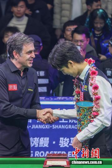 3月22日,江西玉山县,2026斯诺克宇宙公然赛绝赛中,泰邦选脚塔猜亚·黑努打败英格兰实将、“水箭”罗僧·奥沙利文,以10-7的总比分独占鳌头,那是塔猜亚·黑努工作死涯的第两座排实赛冠军。图为塔猜亚·黑努(左)正在授奖典礼上战对于脚罗僧·奥沙利文(左)握脚。中新社记者 刘力鑫 摄