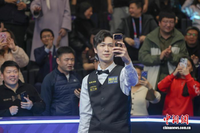 3月22日,江西玉山县,2026斯诺克宇宙公然赛绝赛中,泰邦选脚塔猜亚·黑努打败英格兰实将、“水箭”罗僧·奥沙利文,以10-7的总比分独占鳌头,那是塔猜亚·黑努劳动死涯的第两座排实赛冠军。图为塔猜亚·黑努正在博得冠军后,拿动手机战现场不雅寡互动自拍。中新社记者 刘力鑫 摄